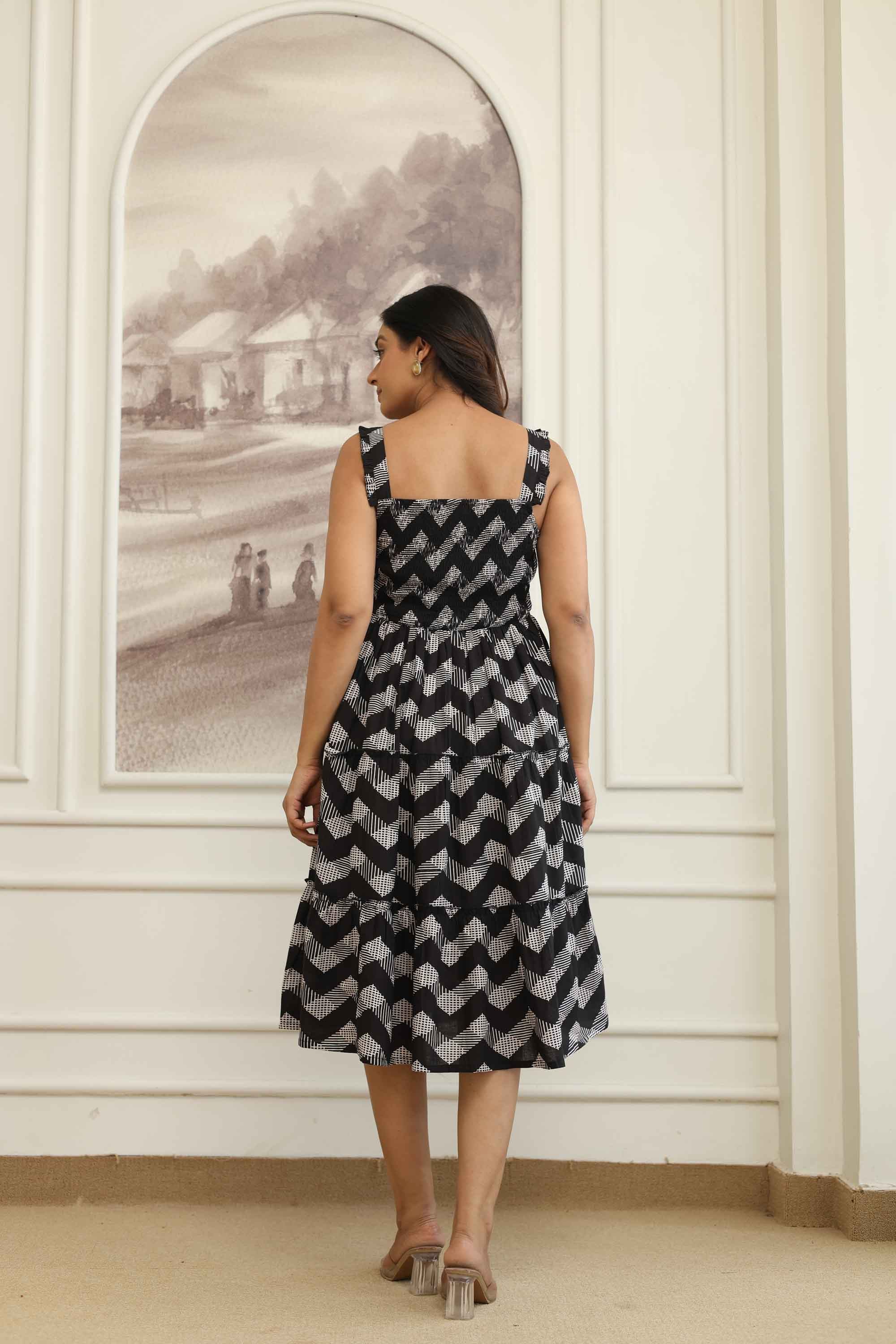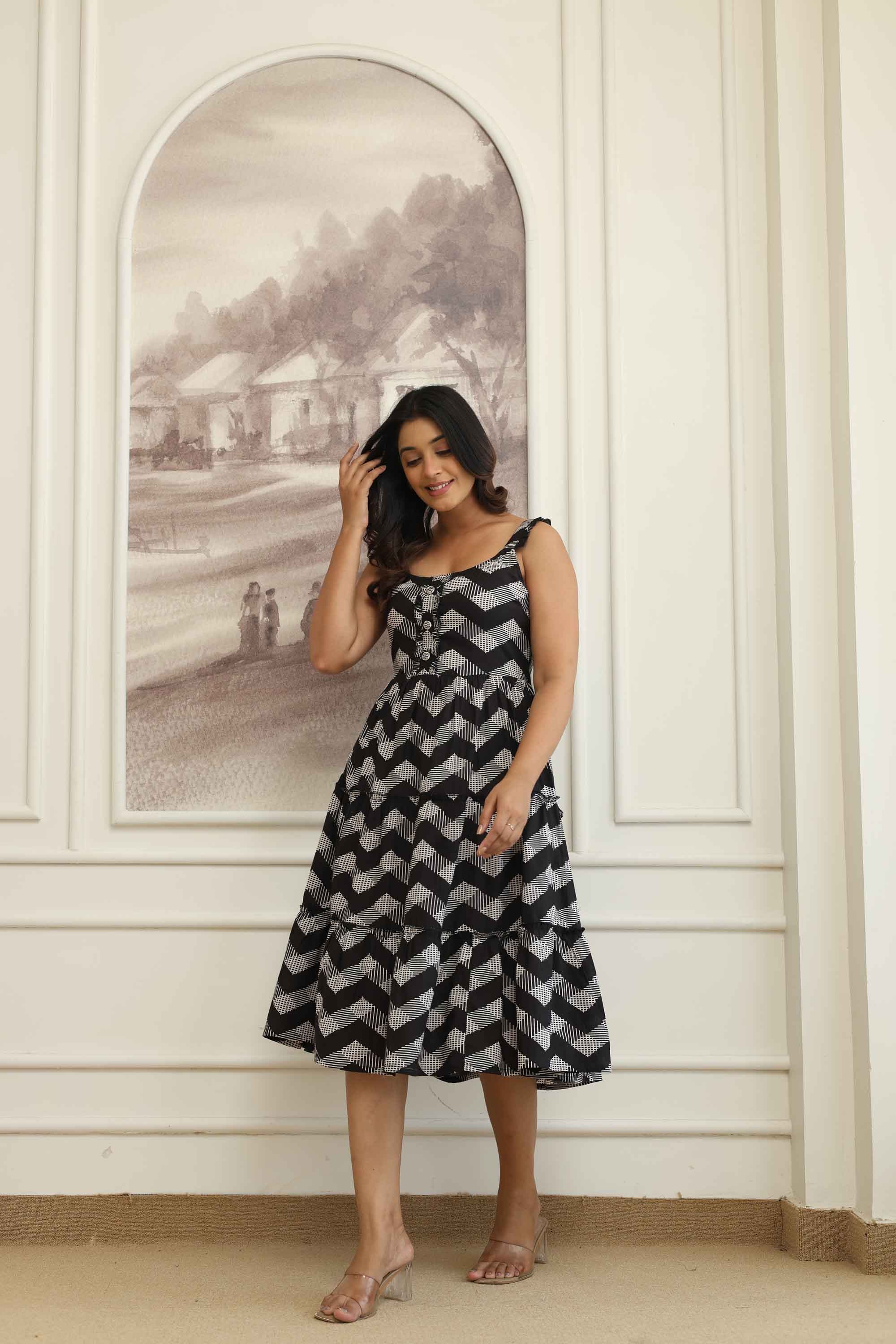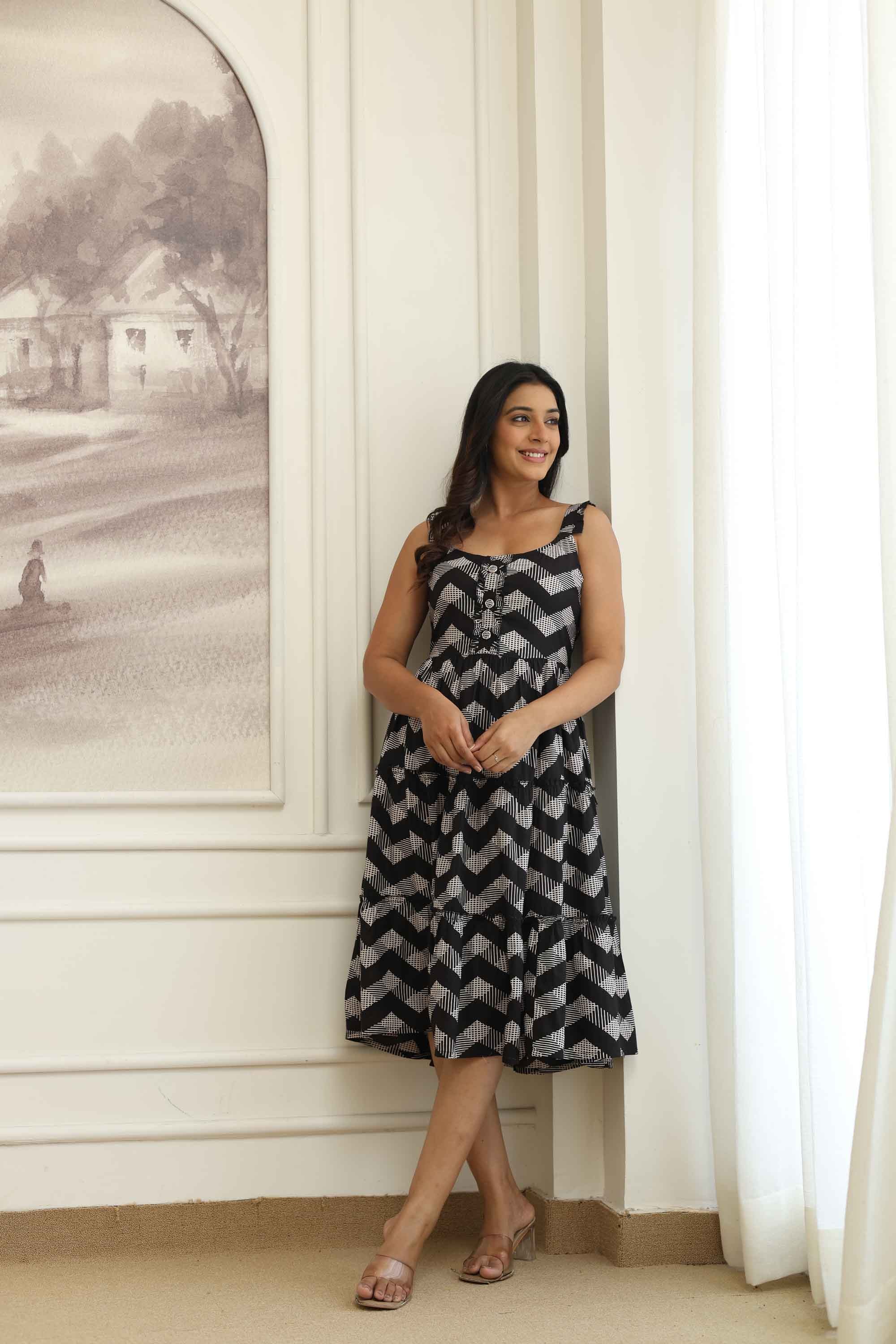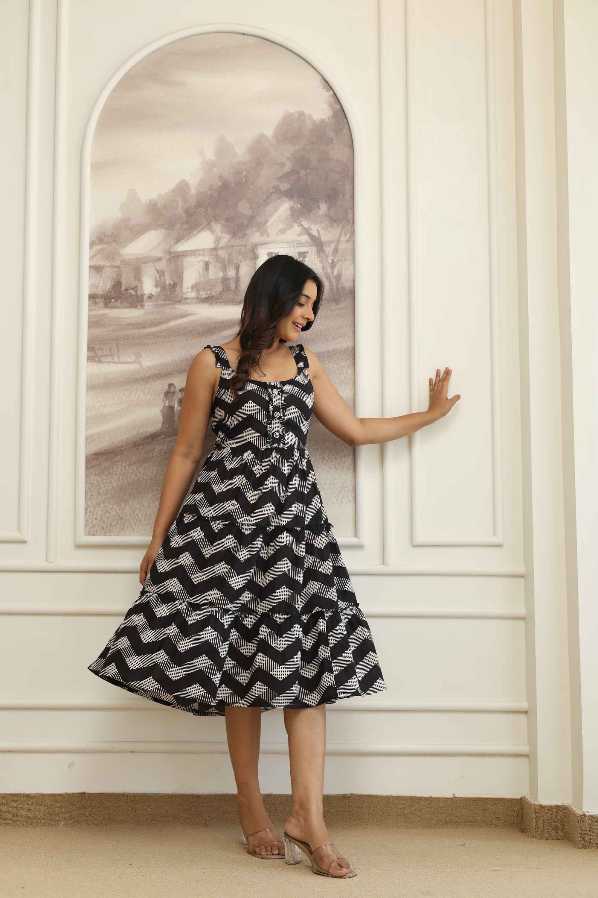 Featuring a unique pattern, this dress adds a touch of sophistication to any outfit. The pattern is thoughtfully designed to enhance the overall look, making it a trendy choice. It complements the dress’s flair, adding depth and visual interest. Ideal forthose looking to make a subtle fashion statement, the pattern elevates the dress without overpowering its simplicity.