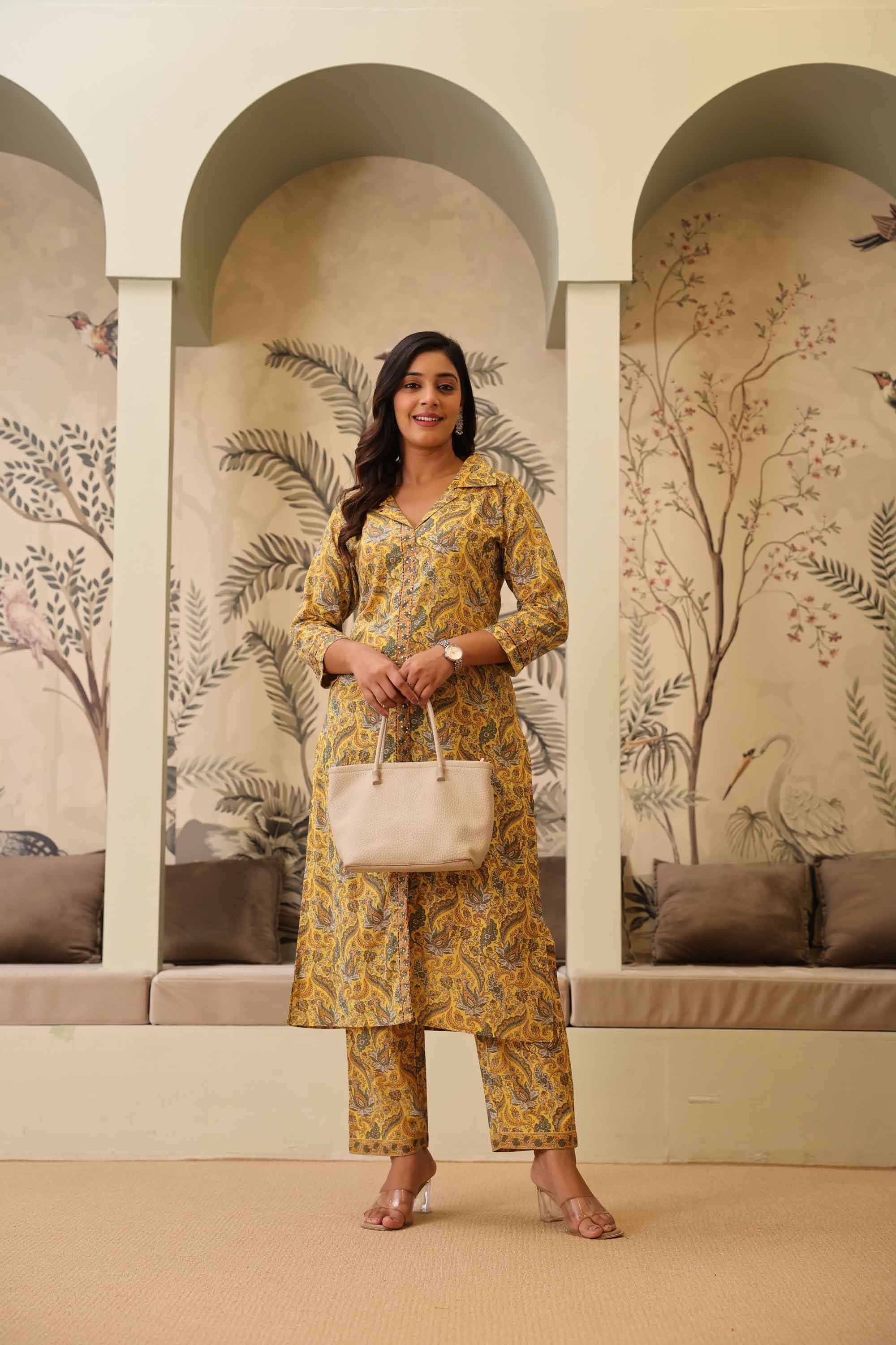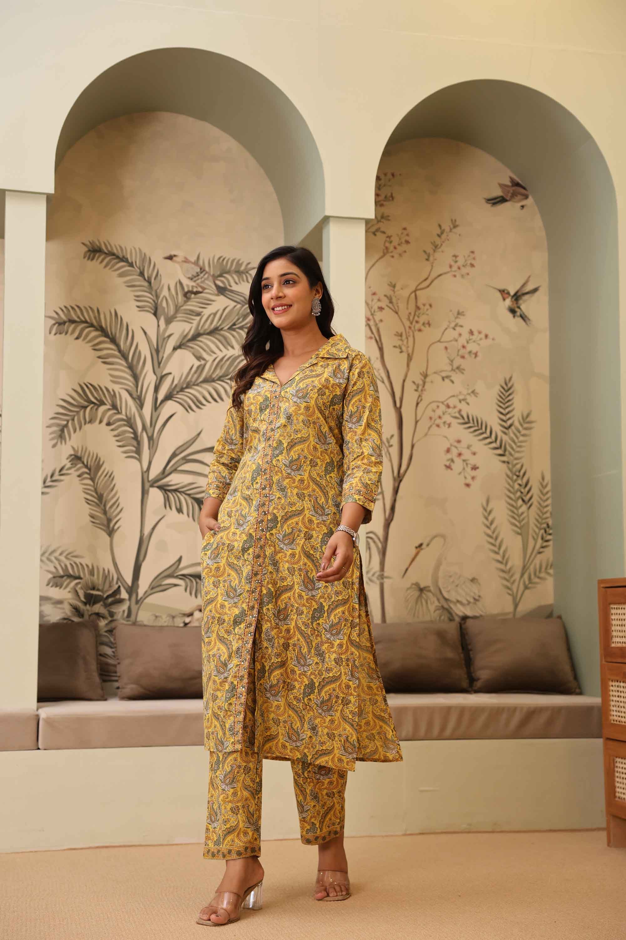 Elevate your ethnic wardrobe with this beautifully designed cotton kurta pant set featuringintricate handwork with sequins that adds a touch of festive Elevate your ethnic wardrobe with this beautifully designed cotton kurta pant set featuringintricate handwork with sequins that adds a touch of festive