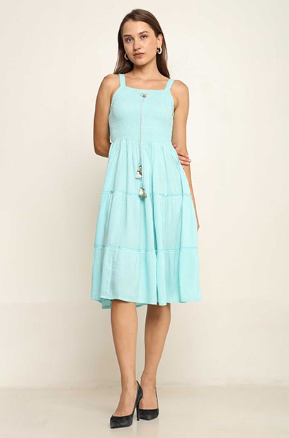 Viscose Rayon Fabric - When you slip into this dress, you’ll immediately notice the silkysmooth feel of viscose rayon against your skin. This fabric is renowned for its softness andbreathability, making it ideal for all-day wear. Unlike other fabrics that can feel heavy or restrictive, viscose rayon drapes beautifully, providing a flowy, lightweight sensation. Contemporary Style - Designed with the latest fashion trends in mind, this dress strikes the right balance between modern and timeless. Its fit and flare design accentuates the wearer's silhouette, offering a contemporary look. This dress represents versatile fashion suitable formultiple casual settings.